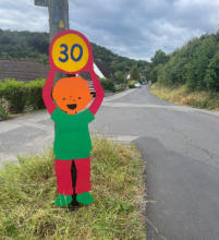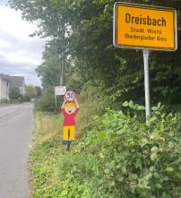 Seit kurzem prügen unsere selbstbemalten Holzkinder die Dreisbacher Ortseingänge sowie Teile der